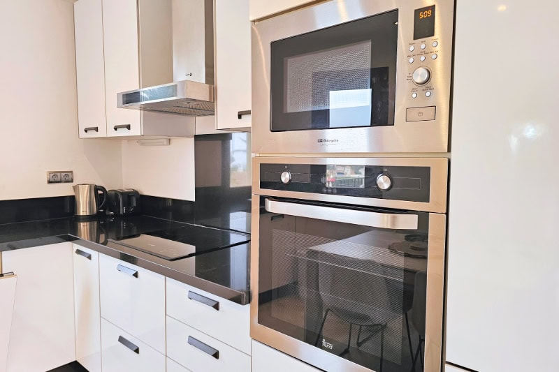 The open plan kitchen is well equipped with dishwasher, microwave, oven, hob, extractor fan, fridge freezer and Krupps pod coffee machine.