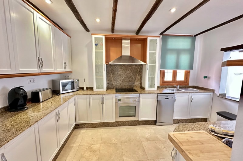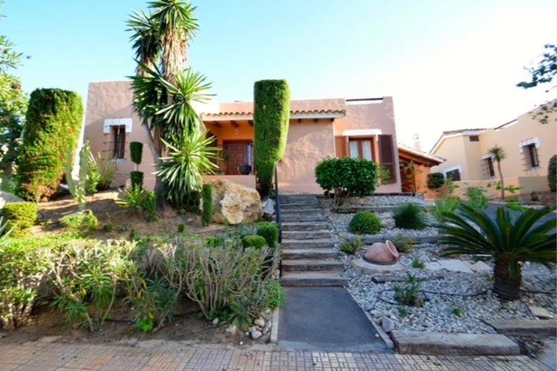 This detached three bedroom villa is spacious and well equipped. It has a sunny wrap around terrace, garden and private swimming pool. There is free wifi internet access.